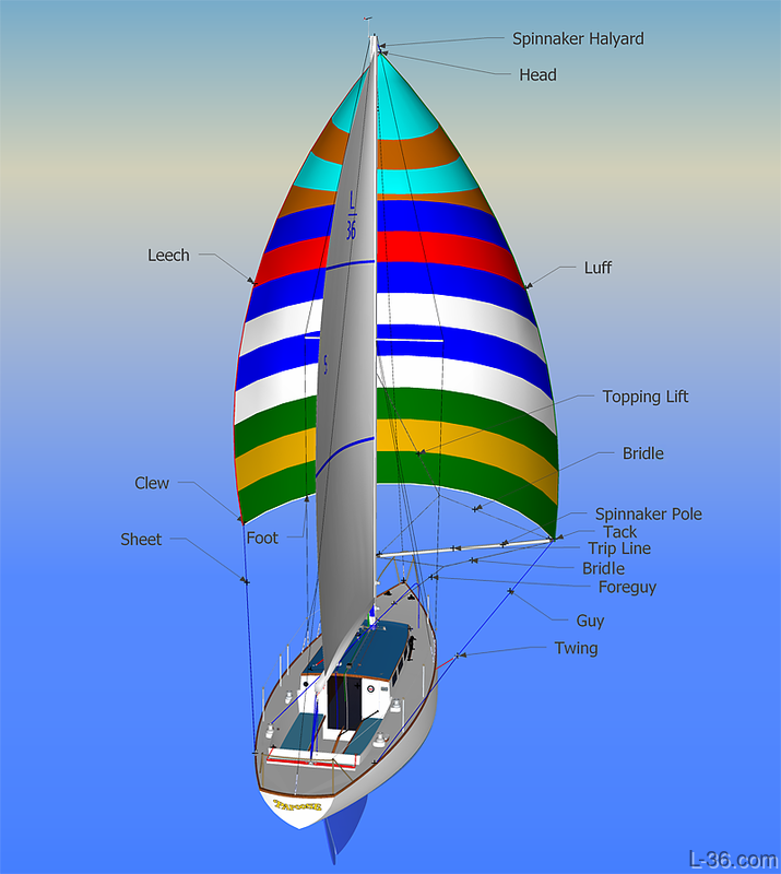Leech: The trailing edge of the spinnaker, which faces aft when deployed.