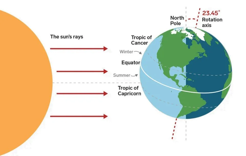 The answer is that starting today, each day moving forward for us we will continue to gain more and more sunlight. In other words, we're on the other side of it now and will be getting longer days of sunlight each day from now until June. And in case you were wondering how much more sunlight each day. Well that depends on which day it is. For example, tomorrow we gain (hold on)... less than 1 second of daylight. By the end of January though, we are gaining ~ 2 minutes more of sunlight each day. We keep getting more and more sunlight each day until March 19th at 10:06 PM when it hits its apex of 2 mins and 50 seconds more sunlight and at which point the gains get smaller and smaller. This date marks the Vernal Equinox and the beginning of spring in the Northern Hemisphere. At this time, the sun is directly over the Equator. It won’t be back exactly over the equator again until the second Vernal Equinox which occurs on September 22, 2024 at 7:44 AM Central Time and marks the beginning of fall in the Northern Hemisphere.